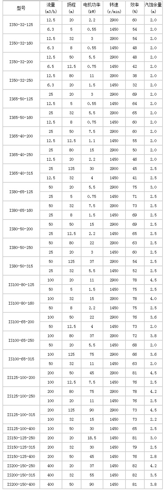 IS單(dan)級離(li)心泵(beng)的性(xing)能參(can)數: