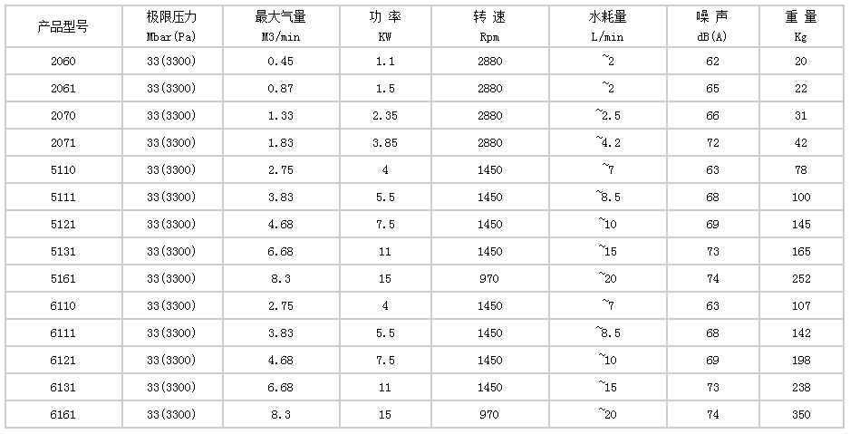 2BV型(xing)水環(huan)式真(zhen)空泵(beng)的主(zhu)要技(ji)術數(shu)據: