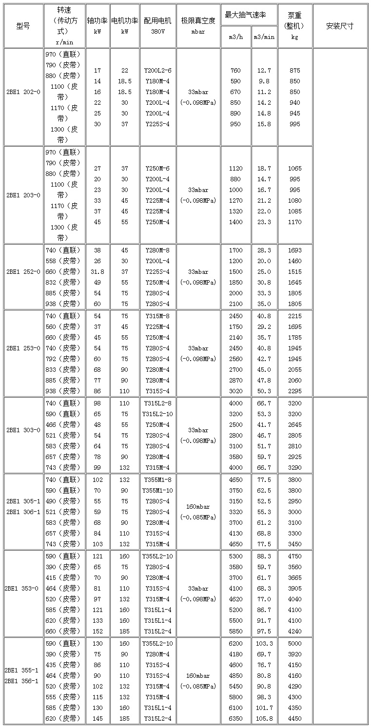 2BE系列水(shui)環式真空(kong)泵技術參(can)數: