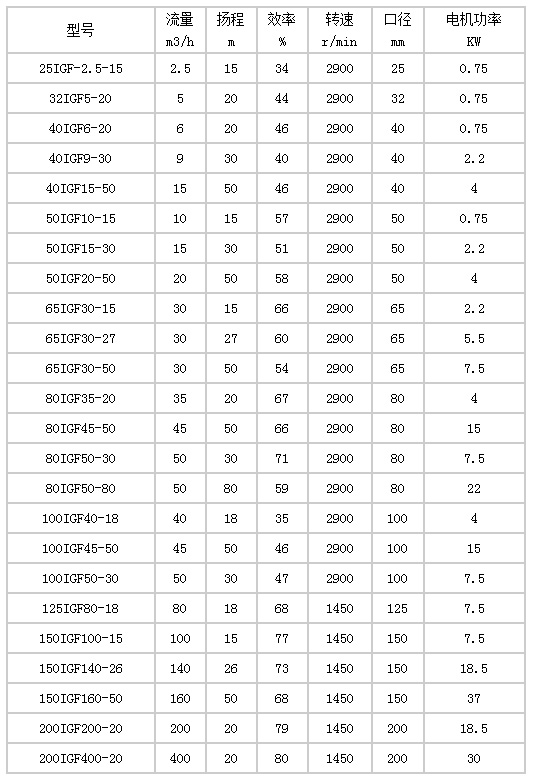 性能(neng)參數(shu): IGF型襯(chen)氟管(guan)道泵(beng)
