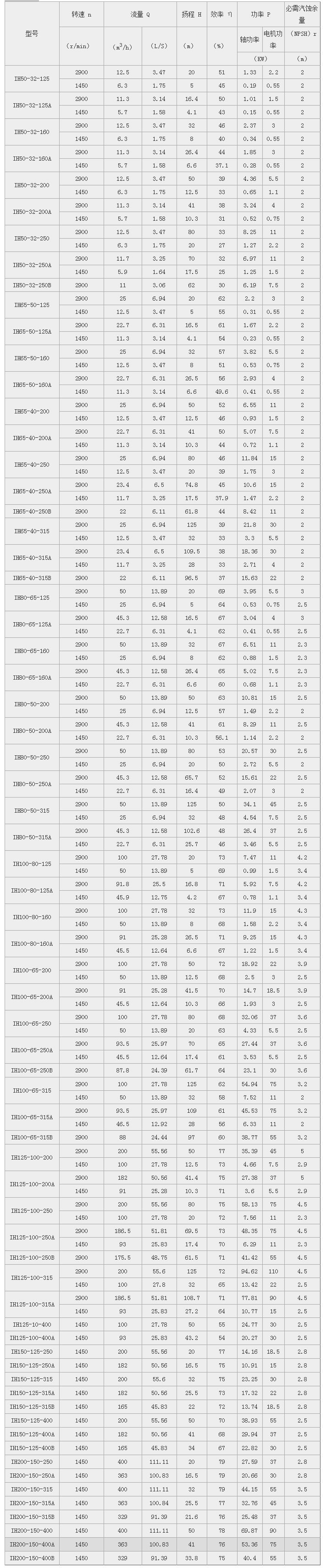 技術(shu)參數(shu): IH型卧(wo)式耐(nai)腐蝕(shi)化工(gong)泵